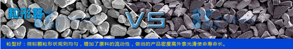 粒型好:微粉顆粒形狀均勻規則,增加了原料的流動性,做出的產品密度高外表光滑使用壽命長。